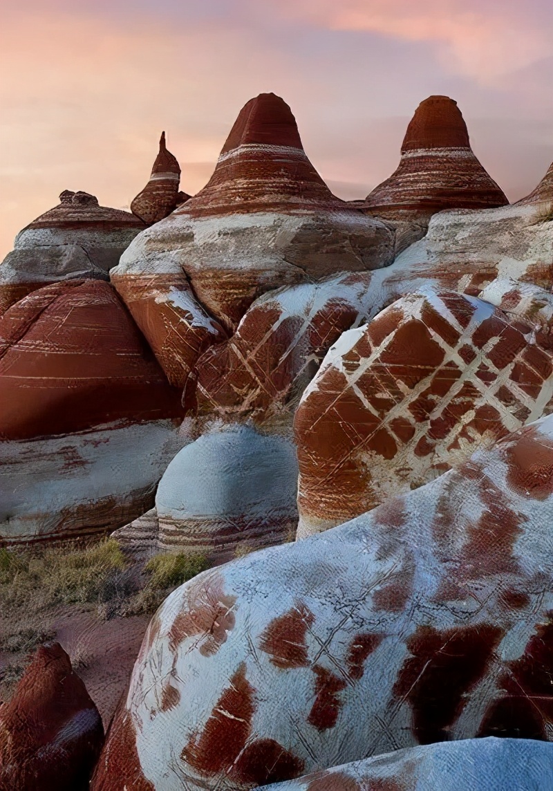 65、严酷的环境将moenave岩层的砂岩变成了各种奇怪的形状。美国宰恩国家公园,位于科罗拉多高原、大盆地与莫哈韦沙漠三地交汇处。