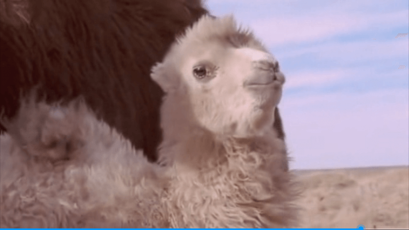 大家欣赏到上面的视频来源,实际上是节选自一部获得过欧洲电影奖提名的德蒙合作纪录片《哭泣的骆驼》。这部纪录片上映之后,全世界开始关注到蒙古游牧民族这个群体,并且被“母驼喂乳”这个人与自然和谐沟通的习俗深深打动。