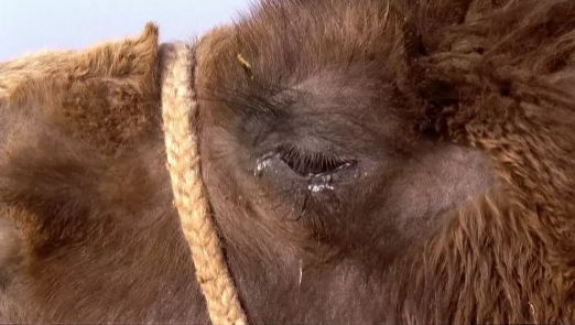 牧民说, 当母骆驼流下一滴泪后,她便会允许小骆驼亲近自己,开始喂奶。在她的眼睛里,我们可以看到一颗真实的泪珠。