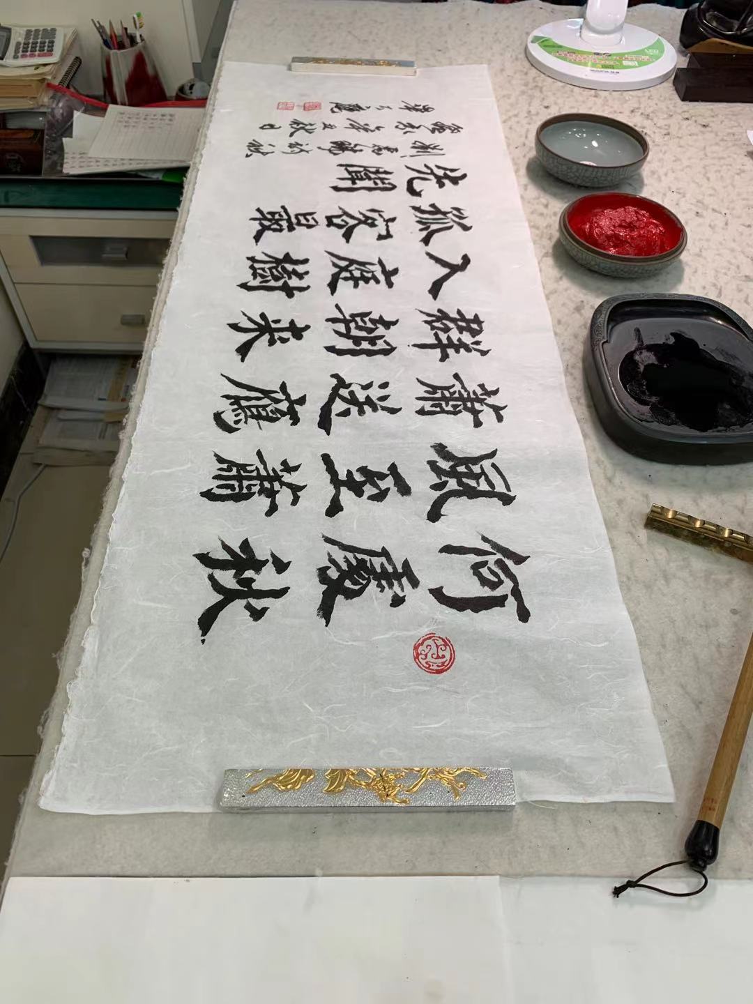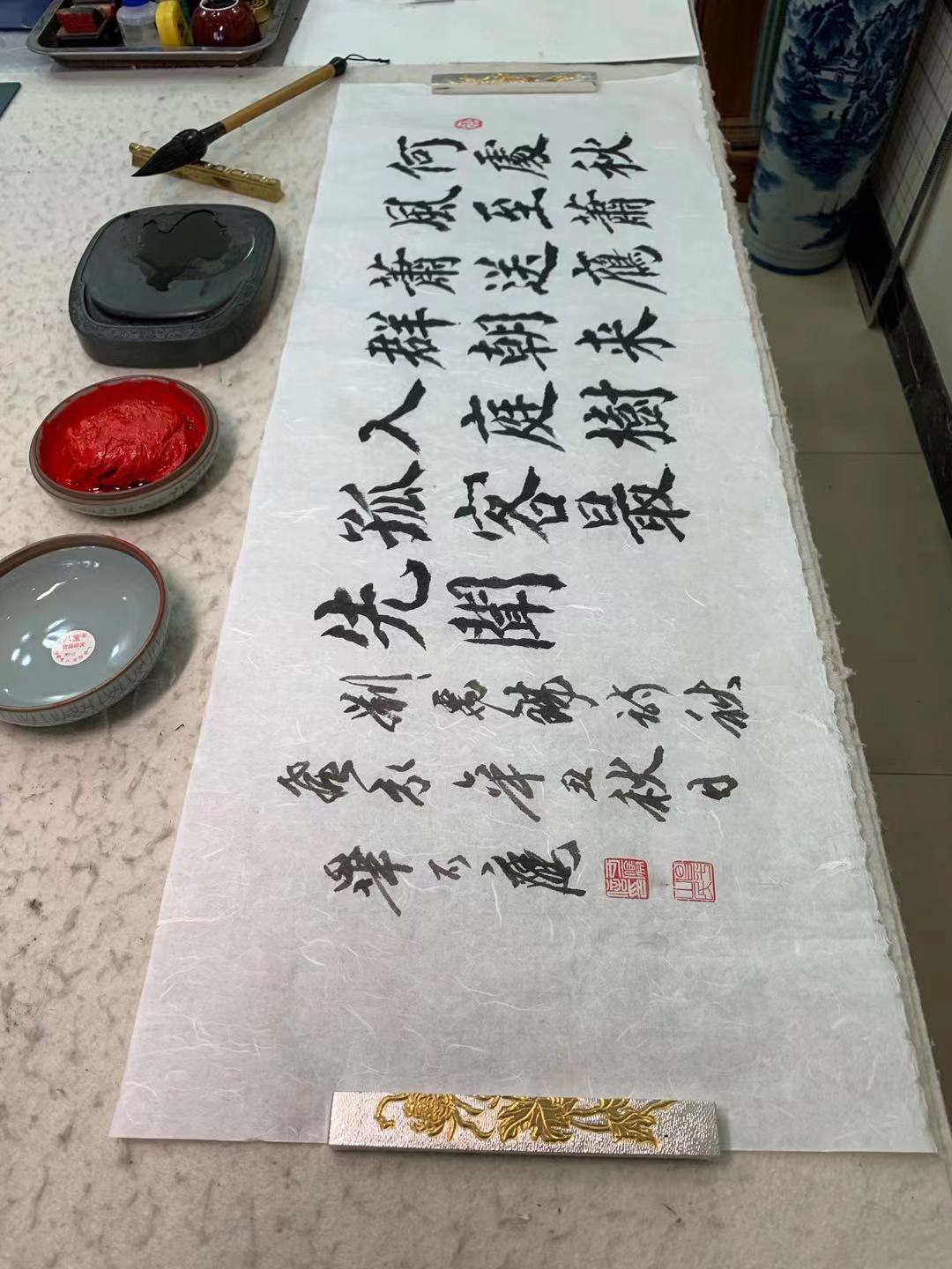 用光绪御贡宣纸,书写陆润庠的长联,加上横眉(诗堂)。