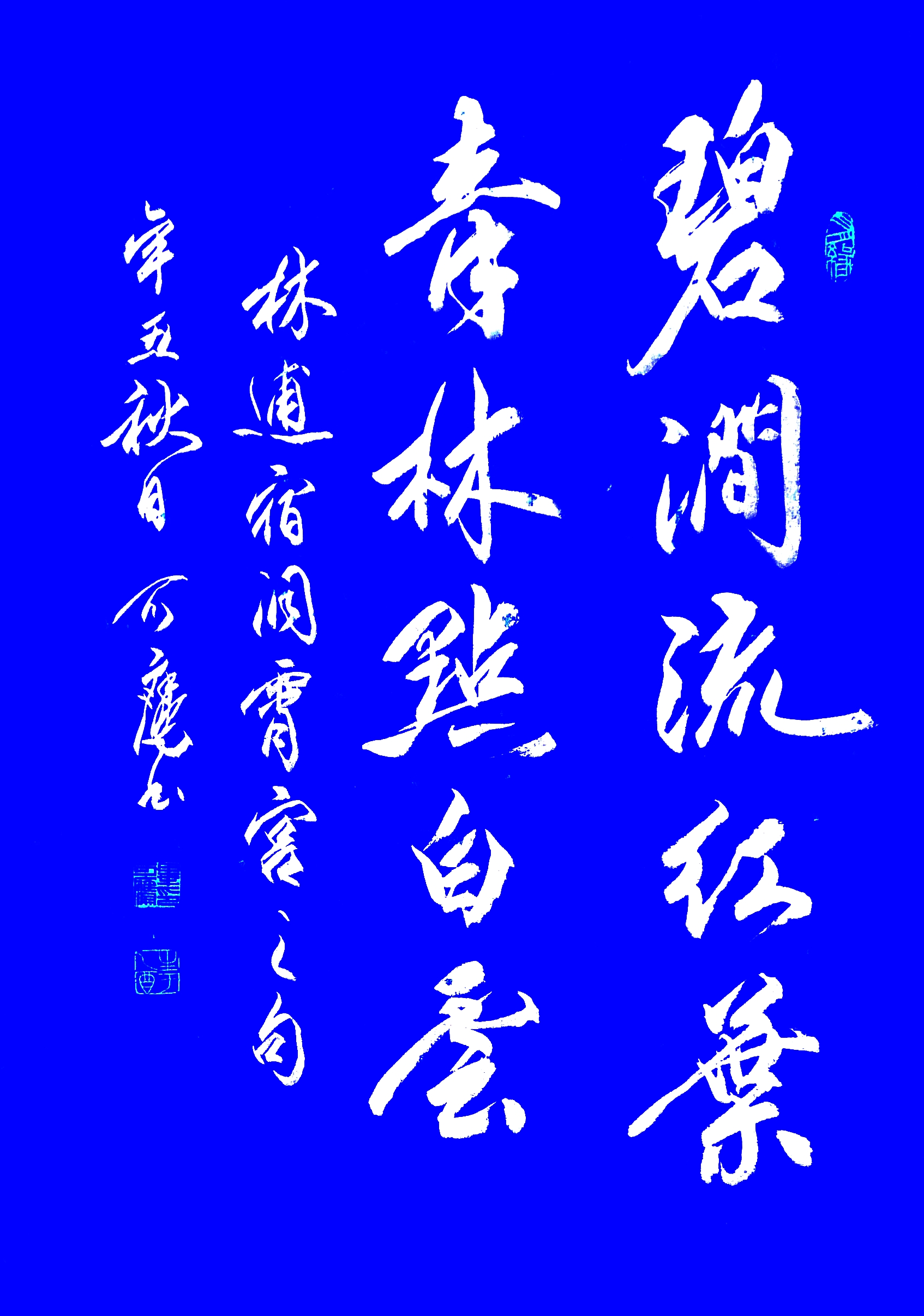 碧涧流红叶,青林点白云。