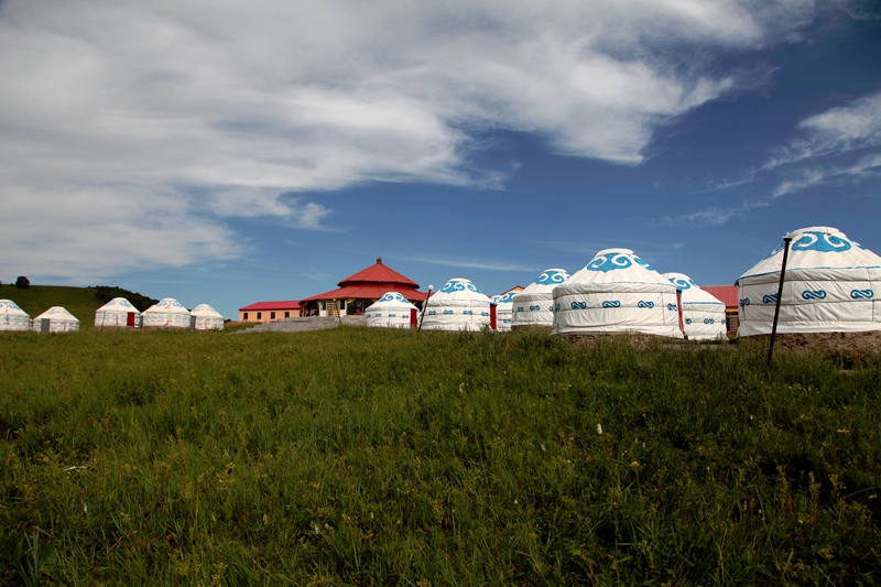 此行第一站,走进世界地质公园大青山。这里有世界罕见的冰臼群和花岗岩峰林。景区内景象万千,有神石、草甸、溪流等。尤其让我震撼的是“九缸十八锅”,这是由花岗岩石,经过第四纪冰川的作用雕刻形成的冰臼。它们有千余个分布在巍峨的山峰中,极具美感。乘缆车上的山来,俯瞰远处的西拉沐沦河,她宛如洁白的玉带,纳百川而滔滔东去。在这里我领略了北方威猛刚烈的魅力,感觉胸襟大展,激情奔放放。