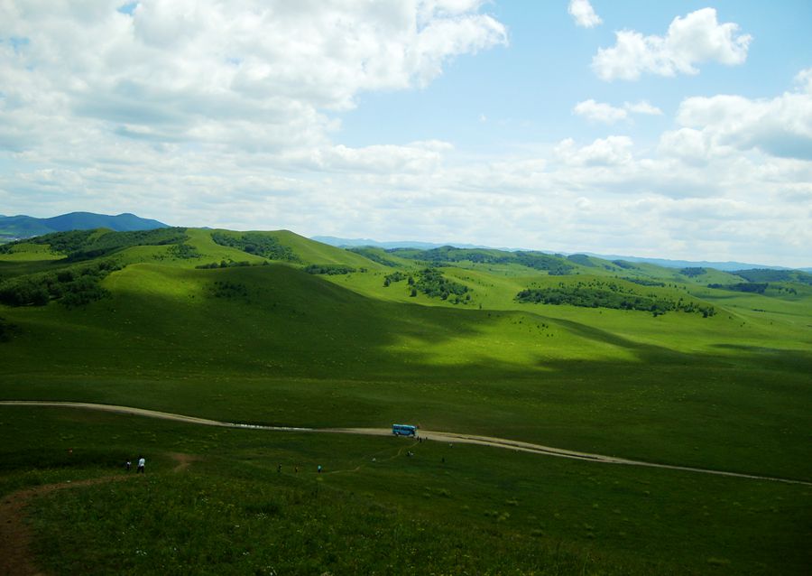 八月中旬,天高云淡,塞外高原已有初秋的味道了。在表哥家里稍作休息,我就踏上了魂牵梦萦的草原游。这是二零零八年,乌兰哈达的旅游业尚未开发,景区不通公交车,我在当地报了个旅游团。汽车离开城市向我盼望已久的克什克腾境内飞奔,随着汽车的簸簸,我的心也此起彼伏。“克什克腾”,蒙古语,近卫军的意思。由明朝中期蒙古大汗在这里驻扎亲军卫队而得名。