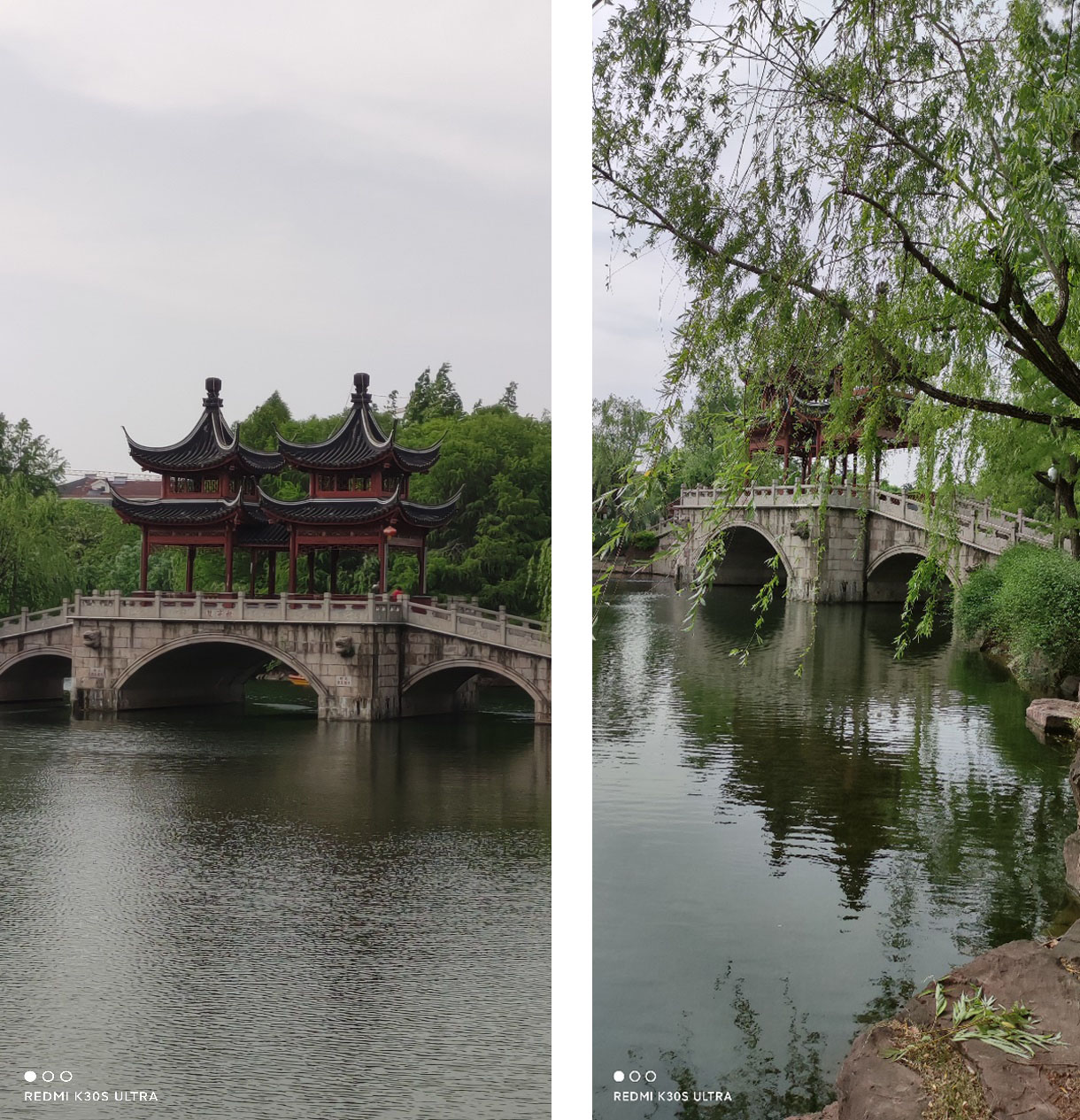 5月初,一个阳光灿烂的正午,我来到了上海奉贤区古华公园,它集江南园林精华,亭台楼阁,小桥流水,绿树成荫。公园里的桥、凉亭仿明清建筑,其中最有特色的是双亭桥,亦名同心桥。