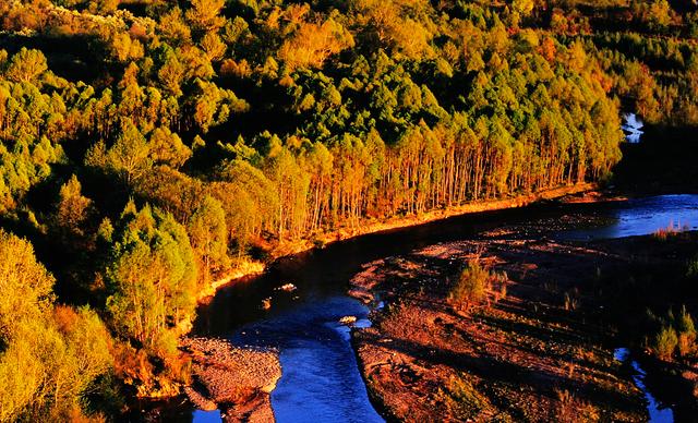 出图强十公里路上有一个大兴安岭湿地森林公园,一条河穿过大兴安岭森林、像一条玉带搭在森林里、河水湛蓝色、一条铁路沿着河边穿过、火车在上面哐当哐铛行驶,站在高处俯瞰,这个森林公园叫九曲十八弯,一眼望去好像南美洲亚马逊热带雨林一样壮阔,九曲十八弯是大兴安岭最漂亮景区、尤其是秋天层林尽染、一望无际五花山、简直比喀纳斯景区、阿尔山还漂亮,游客又少,可以静静欣赏这片美景。