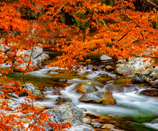 溪水从落满红叶的山间流过