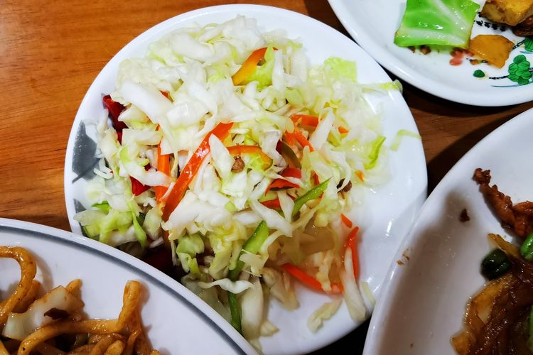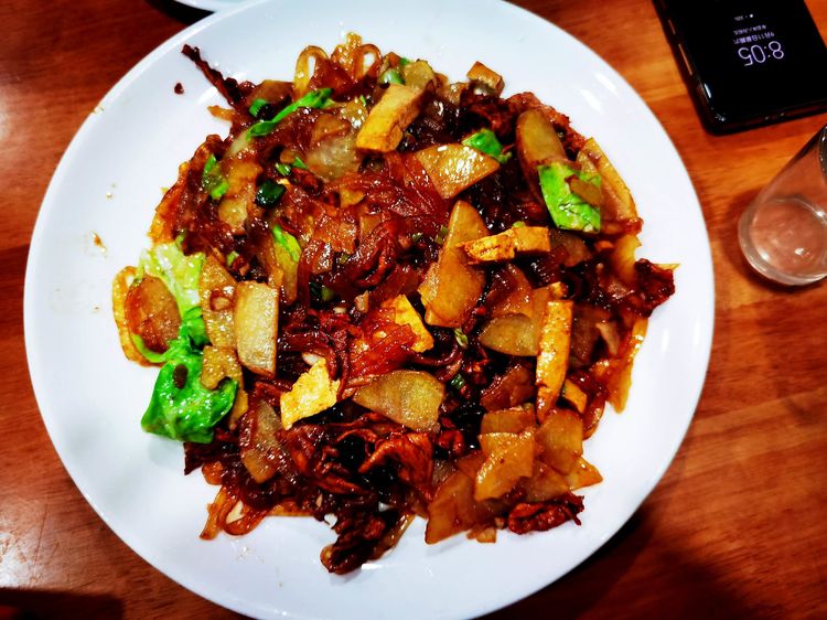 今晚住在了聚香园大酒店,抬头就能看见曾经住过的凌云大酒店。住宿条件一般,但就餐方便,楼下就是饭店。一盘陕西大烩菜,一盘炒面,一小碟泡菜,63块钱。饭菜端上来的时候,看到这两大盘子先就吓了一跳,足足有四个人的量。这还怎么减肥啊?