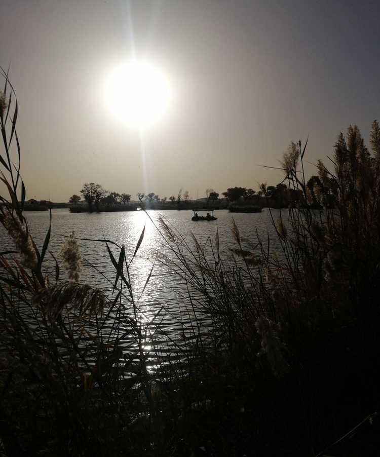 下午三点,启程去阿拉尔,300公里。新疆旅游,真不能烦乘车,哪一段路程都不近啊!这里是塔里木河流域,一路上胡杨林不断,还有长势蓬蓬大草棵子。胡杨树是落叶中型乔木,直径1一5米,高5一10米,树龄可达200年。耐涝耐旱,极适应干旱荒滩生存。幼树嫩枝上叶片如柳狭长,大树老枝上却是叶片如杨。我们从塔里木河大桥驶过,河面宽阔,波光粼粼,景致优美。这里是胡杨林最集中的地方,而新疆的胡杨林又占据了世界的百分之八十。