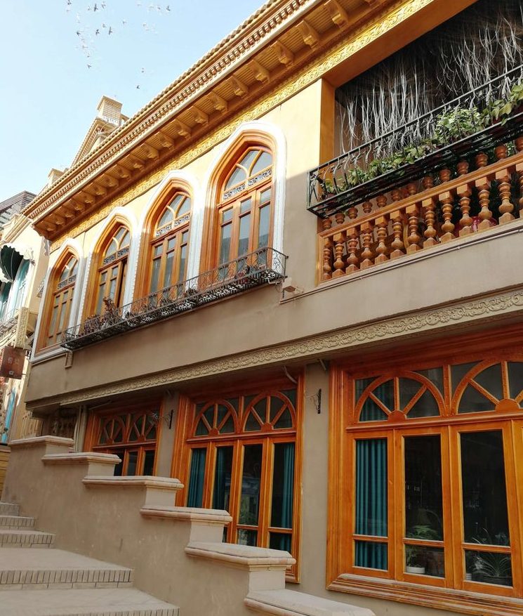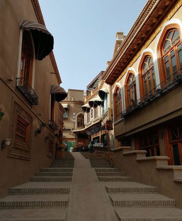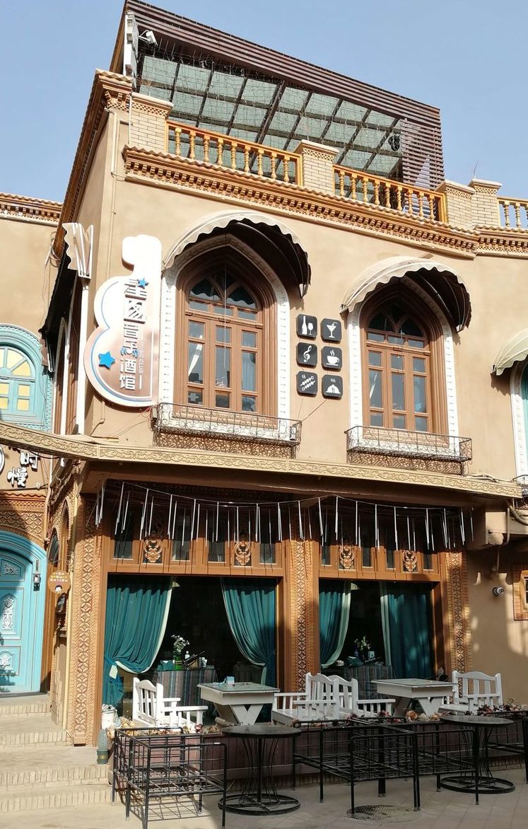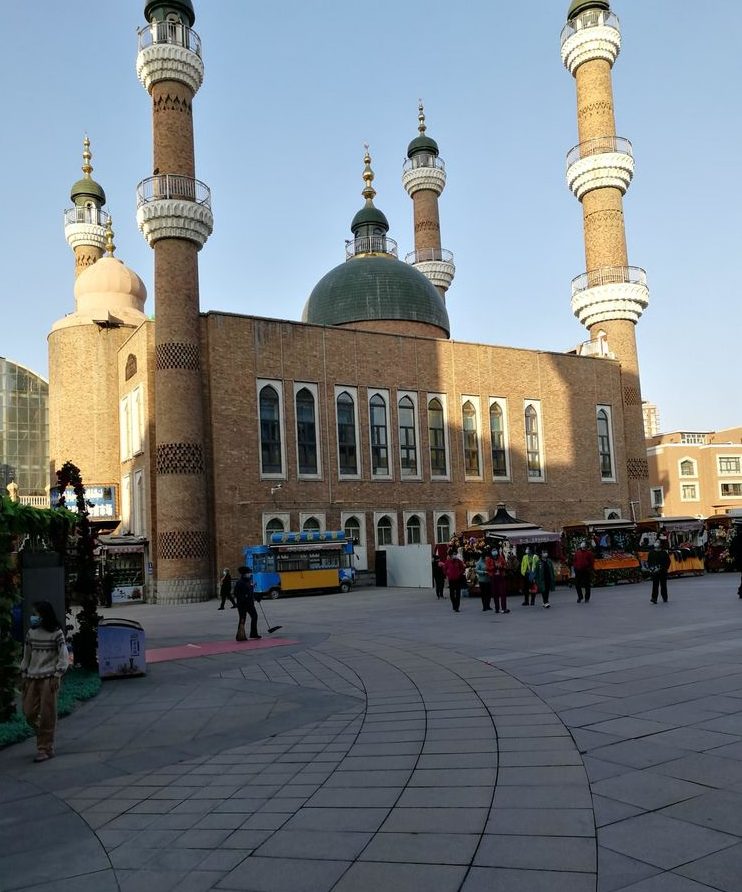 乌鲁木齐国际大巴扎,座落在繁华市区二道桥。2003年我曾来过这里,那时还是大棚建筑。如今是一条商业街,封闭管理,安检很严。街两边是多幢小楼,伊斯兰风格建筑,很漂亮。我们进到1号楼,2号楼,5号搂。因时间关系,其他楼就不能去了。