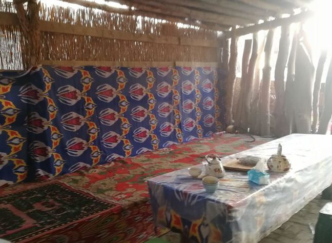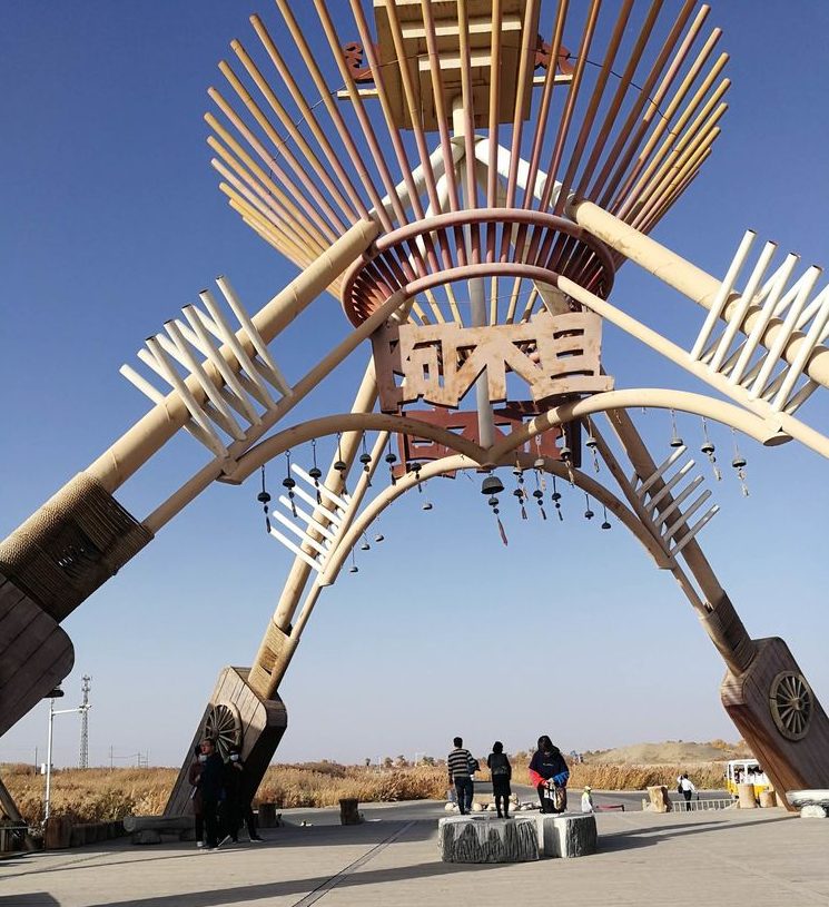 第一站是尉犁县西南35公里处的“罗布人村寨”,中国最大自然村。20几户人家,面积72平方公里。栅栏门上“阿不旦”三字,是维语“世外桃源”之意。