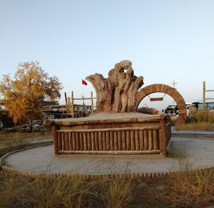 桔黄色的胡杨树,正是一年之中鲜艳时。胡杨树有古化石一说,谓:“千年不死,千年不倒,千年不朽”之说。根系发达,远胜于冠,孤独顽强地生活在荒漠、戈壁之中,在很深很广的地方汲取水源。