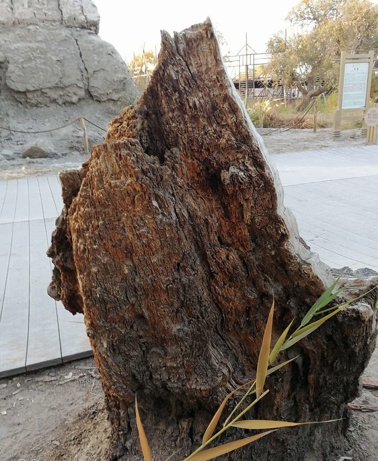 这里有说明,胡杨树化石,系一亿五千万年史前的树干,难得珍贵。