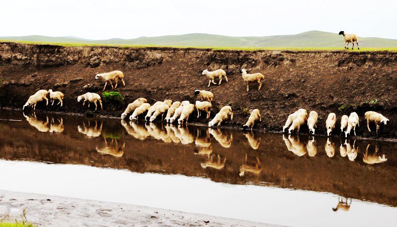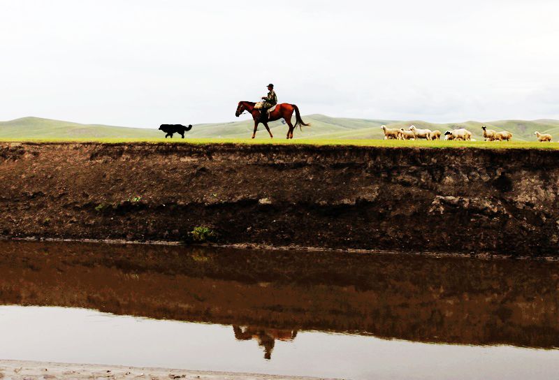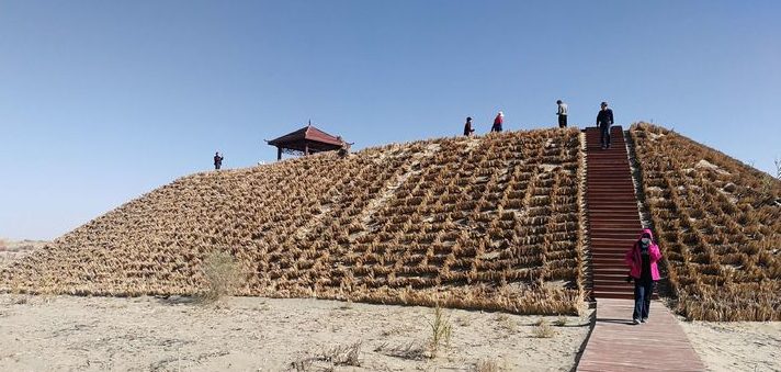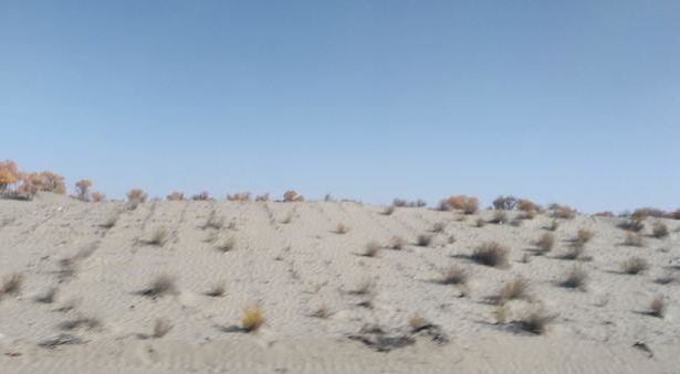 这是戈壁荒滩,还是植被较多的地方。在这么恶劣环境下,依然生长着黄杨树、芦苇、红柳、梭梭草、骆驼刺等植物。虽无思想,却有目标,活下去,活着,尽一切可能生长,生息。