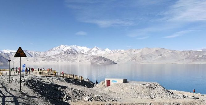 途经玉龙喀什河,著名的和田玉籽料就在这里采挖。和田玉源于昆仑山北坡白玉河冰川之下,被水带到这里,流速渐缓。这里盛产白玉、青玉、青白玉、黄玉、墨玉、碧玉等36种美玉,千年开采,已受大损。改开以来,疯狂之致,用大铲车日夜挖掘,现政府已明令禁止。过桥时,两边各有十数人在河中寻找,导游讲,根本无望。