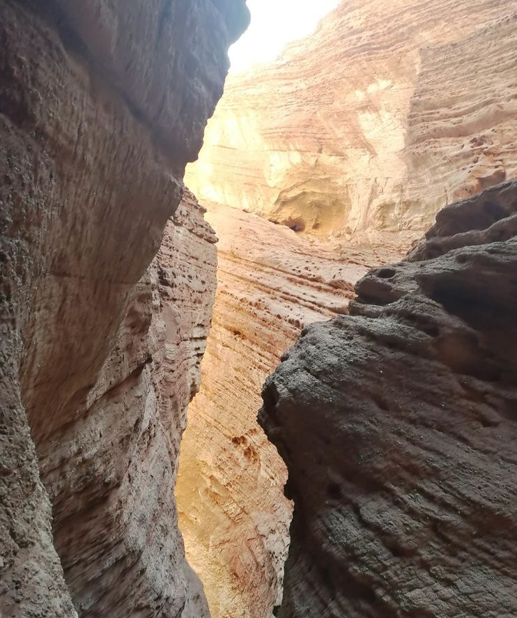 有一岐路,写明“盖世谷”,另有一番景象。地下有水冒出,汩汩细流,虽无泥泞,但要着实小心。途中有不少说明,我最乏想像力,仍看不出所指像什么。这里是最干旱之地,夏日游,倘遇山洪,也是非常危险的,只不过大摡率极低而已。