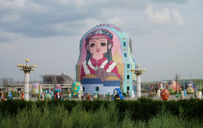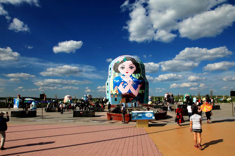 满州里的套娃广场则是将中俄蒙三国风情和东西方文化完美融合在一起,是集旅游观光和趣味情、娱乐性为一体的标志性景区。走进套娃广场,迎面一个高30米的大套娃呈现眼前。这是世界上最大的套娃。它获得了上海吉尼斯纪录。这里的套娃真多,看的我眼花缭乱。套娃的寓意很美好,多福多贵,吉祥如意!