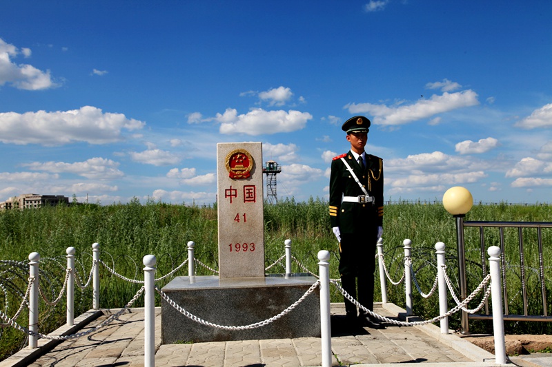 满州里除了大草原外,主要景区有二个,一个是中俄边境界碑(国门),一个是套娃广场。国门进去需门票,套娃广场不要门票。满州里国门是中俄边境处我方一侧的乳白色建筑,上方嵌着“中华人民共和国”七个鲜红的大字。离国门不远是41号界碑,有武警战士站岗。国门底下是国际铁路,对面是俄国边境。