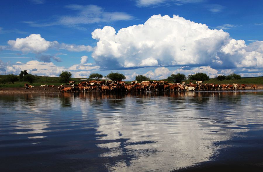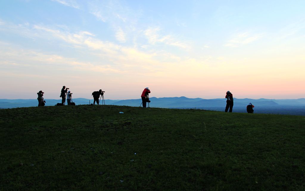 我在湖边找角度取景,突然湖边出现了一个年轻的摄影师,他留着大胡子,扎着马尾,手里拿着一把马甩子扑打着蚊子。在他身边一溜架着三台摄影机,地上还有个大箱子,箱子里全是镜头。摄影师的位置取景极佳,我也跟在旁边蹭拍,那个时候,我刚端起相机学摄影,什么也不会拍,连普通的构图都找不准,就想看看人家摄影师是怎么拍的。我谦卑的请教摄影师,这个年轻人很热情,帮我调参数,找角度,我在摄影师的指导下拍了几张满意的夜景。询问才知,原来人家是中央电视台来拍专题片《魅力满州里》的摄影师,乖乖哟,我有幸遇到高人了。