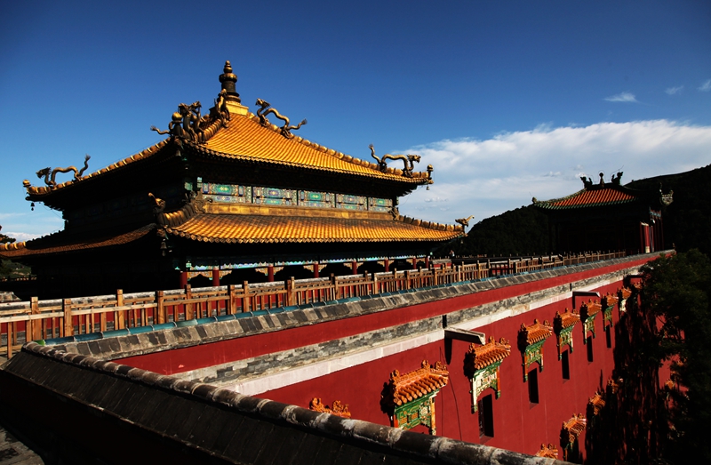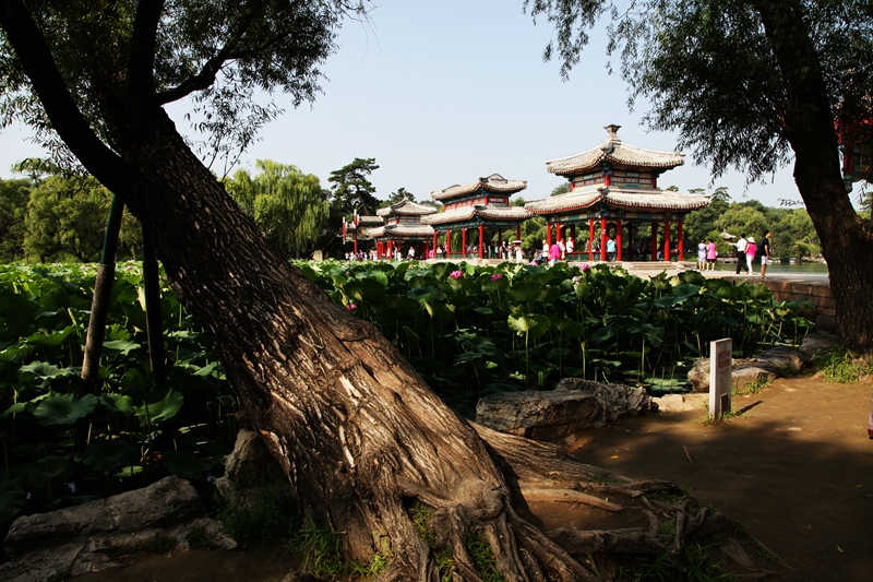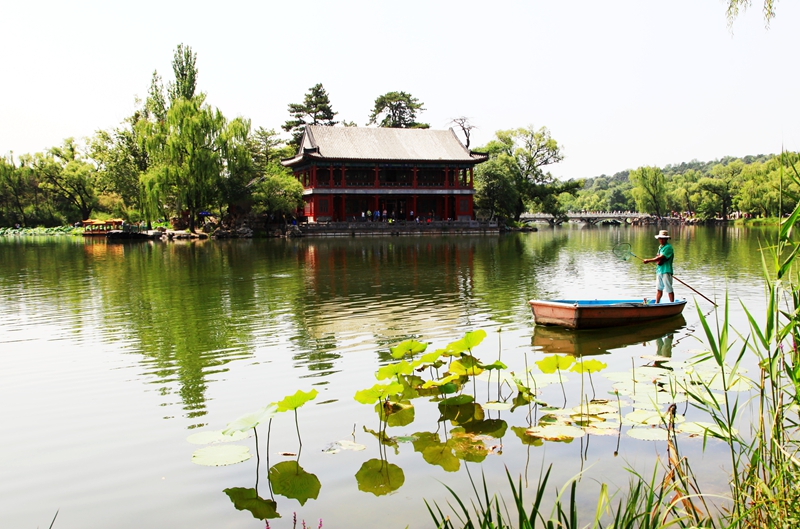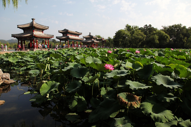 八月正是荷塘飘香的季节,在湖边赏荷,微风轻拂,荷香清远。满池荷叶,像绿色的海洋,在微风中摇曳,粉嫩的荷花,亭亭玉立,含笑绽放。绕湖漫步,花红柳绿,赏心悦目。山庄外围依山势起伏而建的外八庙,金碧辉煌,风格迥异。听说每一座寺庙的建立都有一段感人肺腑的故事,令人赞叹不已。徜徉其间,你会感受到清王朝历史的变迁及兴衰。难怪有人说:“一座山庄,半部清史”。