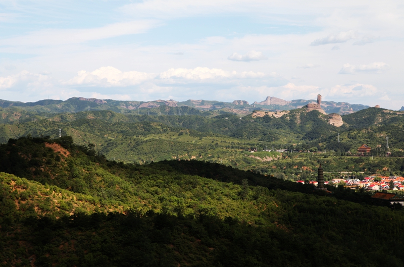 当我登上小布达拉宫高高的台阶,站在顶端俯瞰,视野开阔,只见山峦起伏,林木茂盛,古城墙蜿蜒。远处的棒槌山挺拔耸立。山麓间,分布着宏伟壮观的寺庙群,把承德点缀的更加壮丽非凡。在布达拉行宫对面是古城墙,聚集着许多游客,我很想感受一下母亲说的城墙能跑马的景观,也很想去登棒槌山看看大自然鬼斧神工的杰作。可是很遗憾因时间关系,只能远观了。