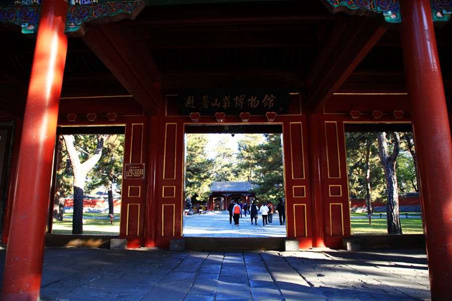 避暑山庄赫赫有名,因为她不仅是皇帝的行宫,还是清政府与外会晤接待外宾的地方。听导游讲,这里的主殿叫澹泊敬诚殿,外表古朴大方,但建筑规格极高,相当于故宫的规格。这座殿全部是用楠木造成,是标准的“低调奢华”。我们依次参观,整个宫殿景区,除了红墙硫璃瓦的宫殿,还有满院落的苍松古槐,这些古树虬枝如盖,显得格外清爽、古朴、淡雅而恬静。我流连古树间,扑捉斑驳光影,竟忘记了时间。宫殿区实在是好看,不仅有皇家气派,还有生活野趣。