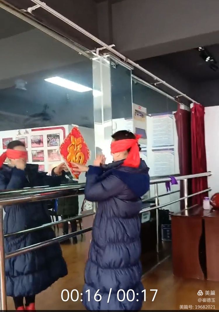 活动第三个是摸福,在规定的距离,把眼睛蒙上,然后去摸福字,有人欢喜有人忧,有的人很容易就摸着福字了,还是有人没有达到目标!
