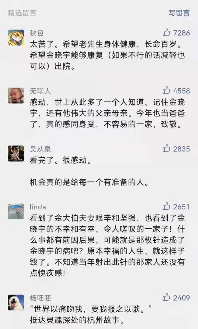 这个残酷而温柔的故事,让全网读者都无之不动容。电话瞬间打爆了金晓宇家,国内二十几家媒体来电联系采访,至少有七家影视公司表示,想拍摄这个被称作“杭州版《美丽心灵》”的故事。