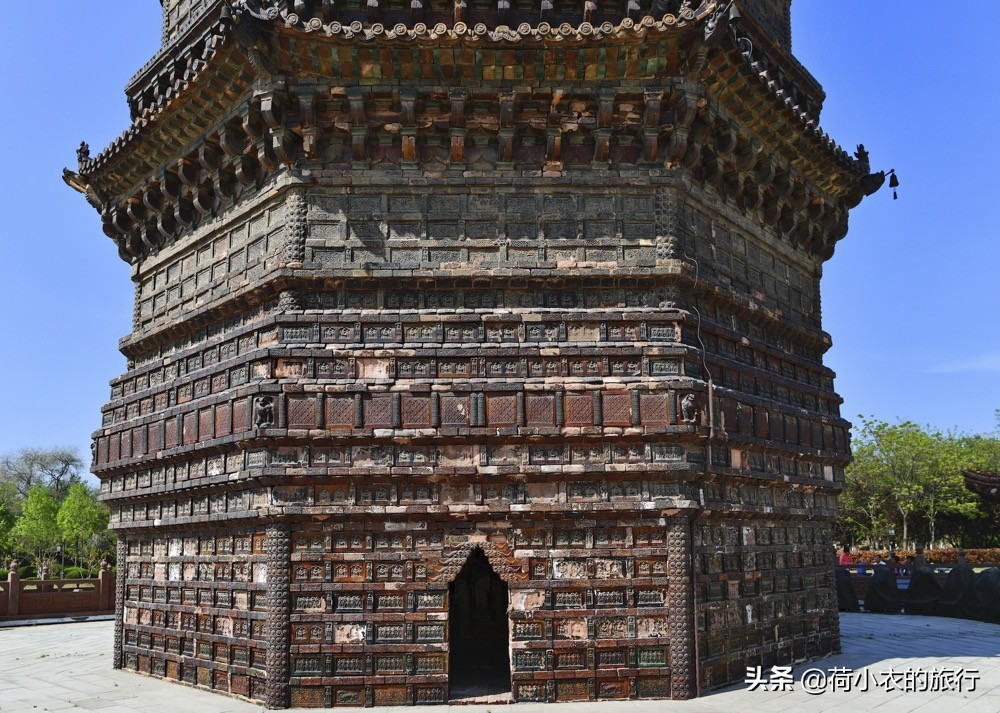 这座铁塔最大的特点就是稳固采用的是中国传统的木式结构形式,砖与砖之间如同斧凿,有沟有槽,垒砌严密合缝。历时900多年,历经硝烟、天灾人祸,依然屹立不倒。