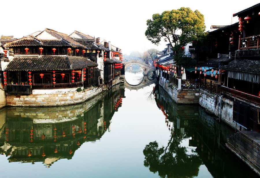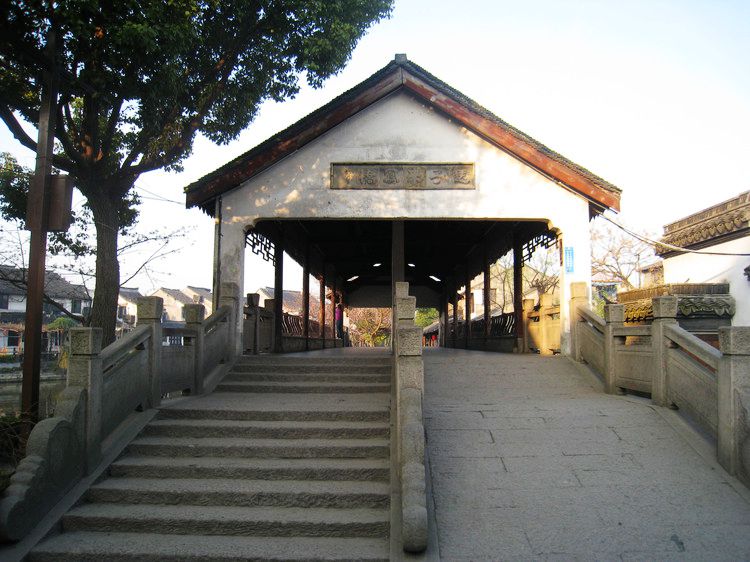 木渎古镇保持了原始风貌,是姑苏第一水镇。同样是水乡,木渎的桥没有周庄的华丽高耸,也没有西塘的精巧典雅,可它古朴结实,古意盎然。走在上面,能给人以踏实之感。在木渎,最有名的当属西施桥。这是个两孔桥,桥下溪水潺潺,桥上亭角高翘。相传春秋未年,吴越纷争,越国战败,献美女西施与吴王。吴王夫差为取悦西施,在秀逸的灵岩山顶建造管娃宫,又在紫石山增筑姑苏台,“三年聚材。五年乃成”,源源而来的木材堵塞了山下的河流港渎,“积木成渎”,木渎便由此得名,西施桥也因此建成。