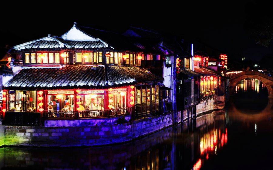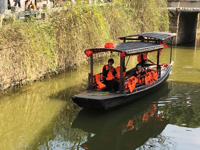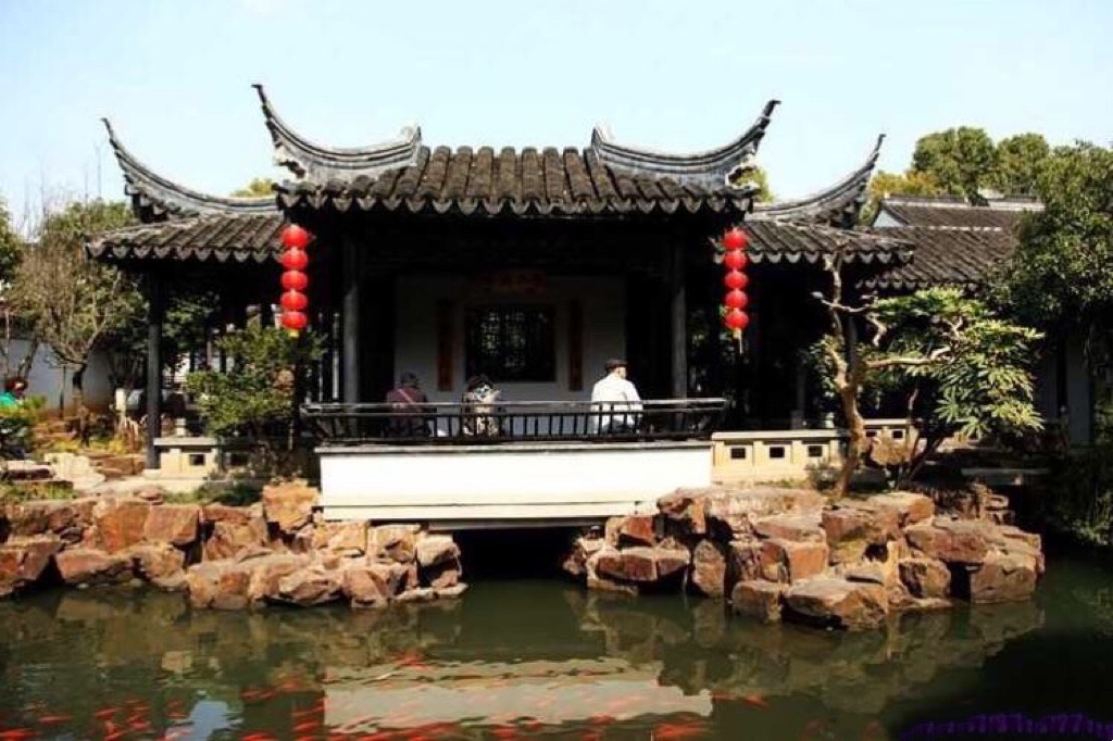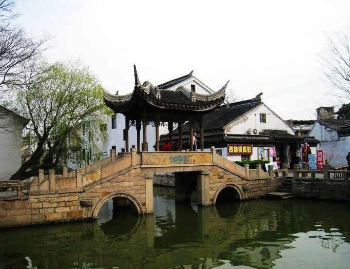我分明看见了乾隆皇帝,一袭龙袍,风流倜傥。身边的妃子,华服异彩,两人温情呢喃,拈花而笑。乾隆帝南巡六下江南,六次驻跸木渎,是什么令他如此偏幸?亭榭旁有位佳人,撑着油纸伞,婀娜妩媚,一动不动,我以为是假模,碰一碰,眼睫毛颤动,吓我一跳,原来是个真人。下午的阳光缓缓的移动,似流金撒在斑驳的石桥上。烟柳人家,古街老桥,深幽小巷,亭台楼榭,都在我眼晃动。