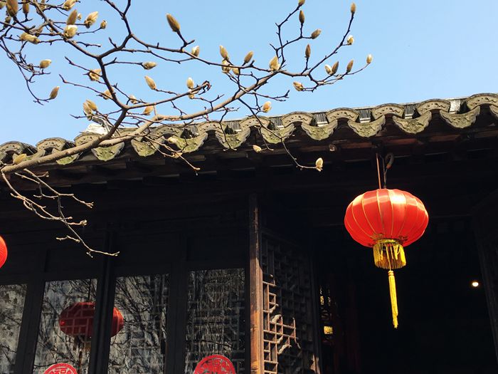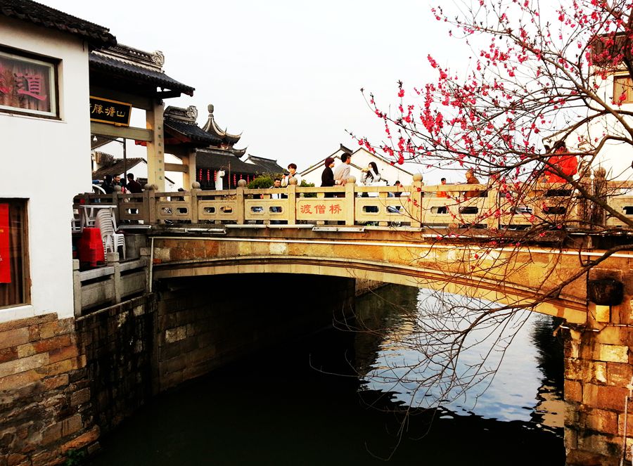 香溪河岸有一片嫩嫩的黄,那是早春的迎春花儿。木渎古镇在春风的吹拂下,远离了残留的一抹寒冷和孤寂。中午走累了,就在古镇石家饭店品尝鲃肺汤。这道菜是木渎石家饭店的招牌菜,汤清味美,回味无穷。还有枣泥麻饼也很好吃。