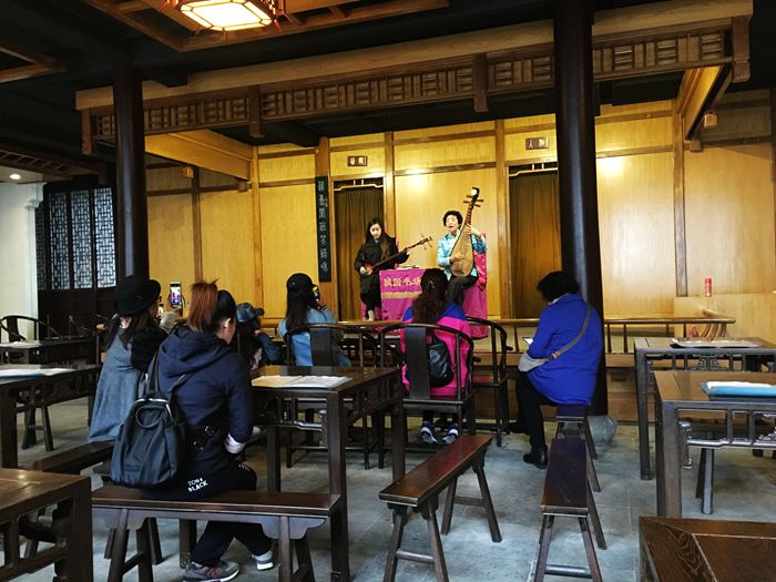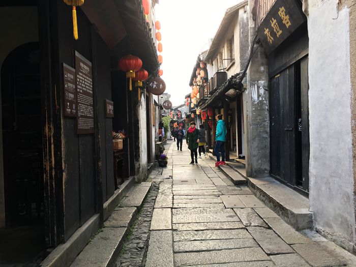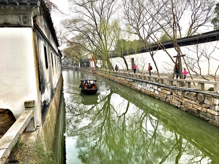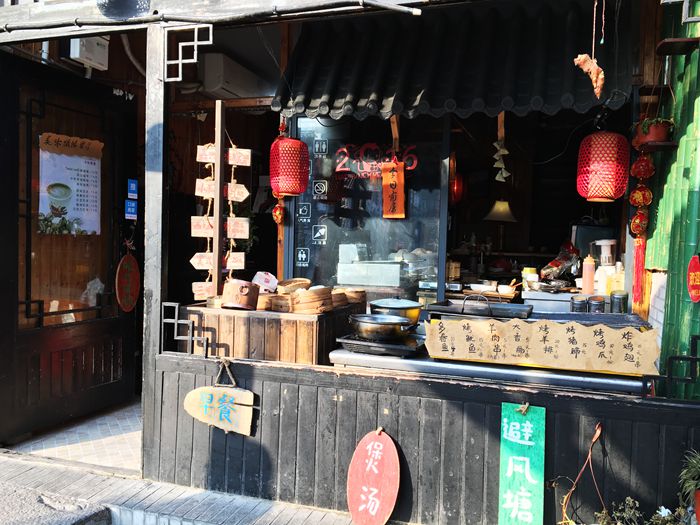 我第二次来木渎是七年后(2017年)的早春。这时候的木渎变化很大,那座紧锁的古街已开放,道两旁是饭店、酒肆、茶吧、咖啡店等。这是个休闲区域。游客逛累了,可以坐在店里歇歇脚,发发呆,或者喝喝茶,品尝小吃。这些小店,装饰的非常精致,让人坐下就不想离开。以前沿街开了许多古装店,满镇都是来拍古装照的人,现在所剩无几,看来古镇也与时俱进了。