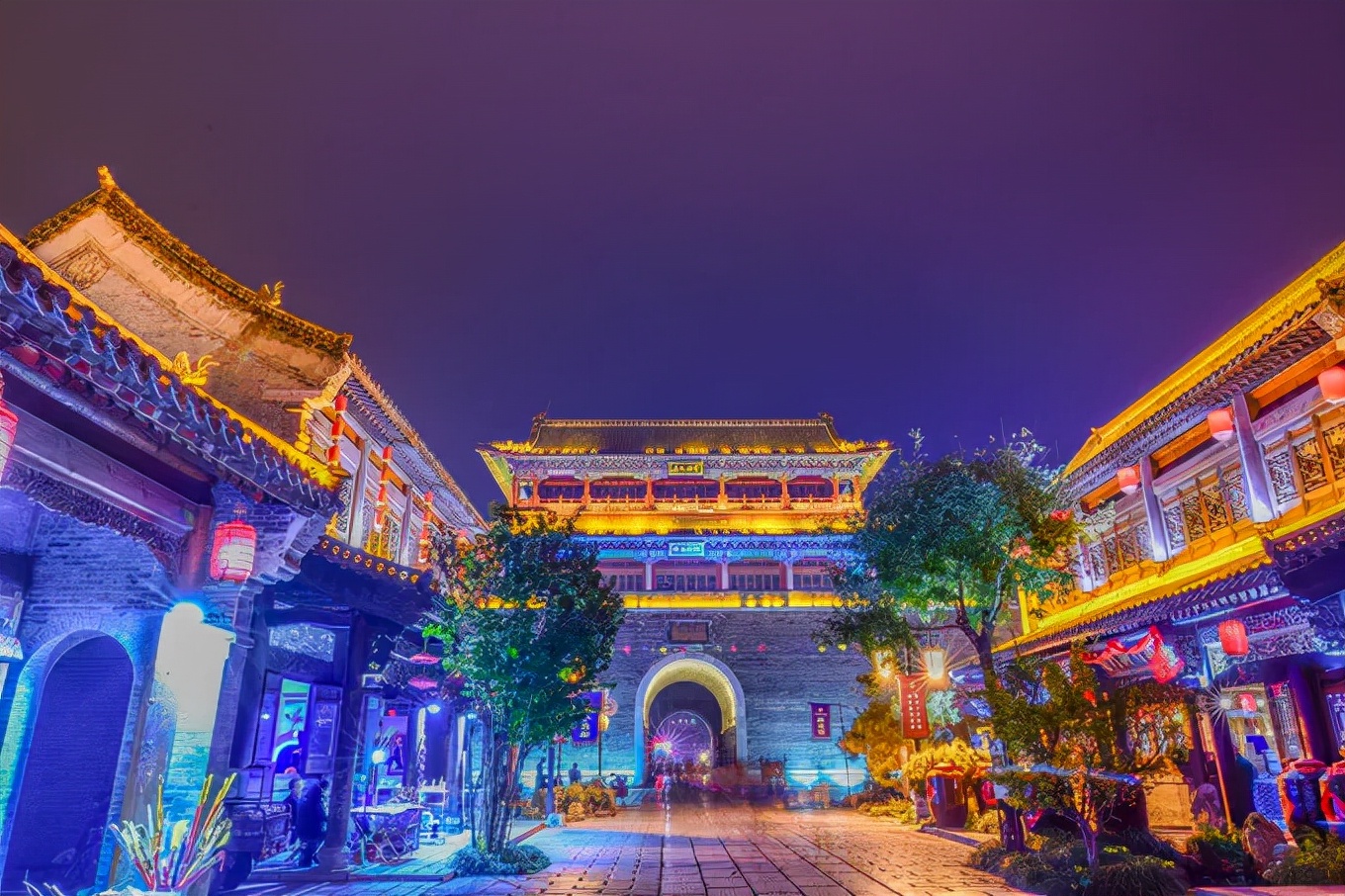 城门街道皆是景观,石雕砖地古朴凝重,山亭水榭精巧别致,飞檐斗拱如同画境。