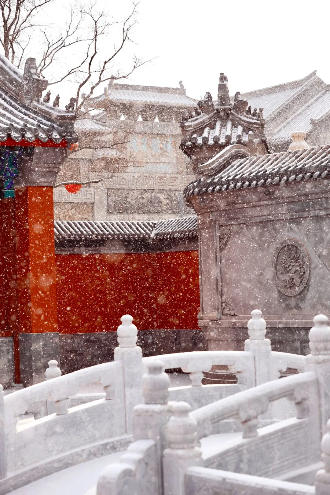 皑皑白雪潇洒飘落,琉璃瓦上眨眼间便覆盖了一层白霜,古城的建筑在白雪的映衬下便有了自己独特的韵味,让人梦回千年。
