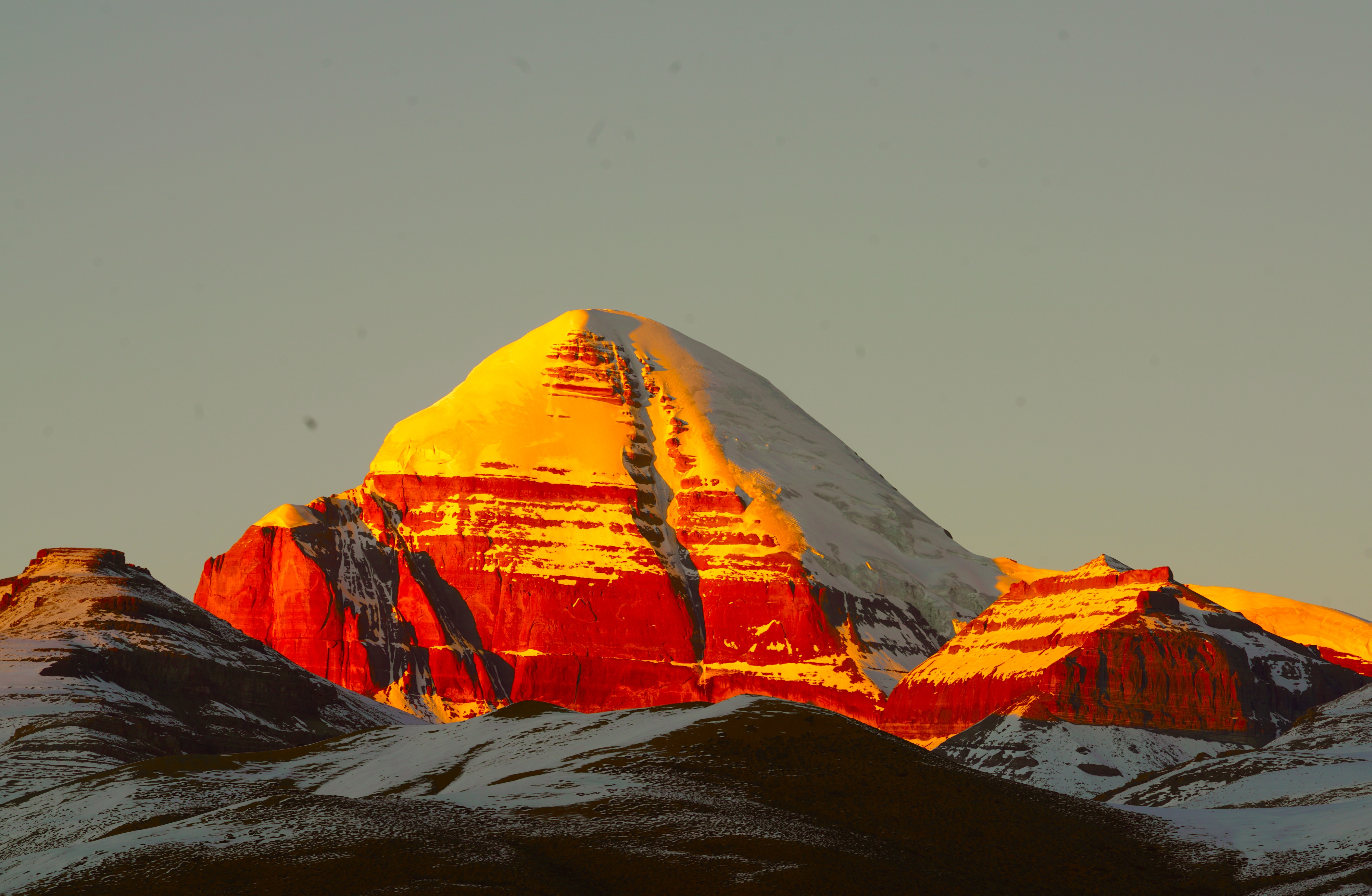 在太阳升上地平线后吸收太阳光的晶体冰。
