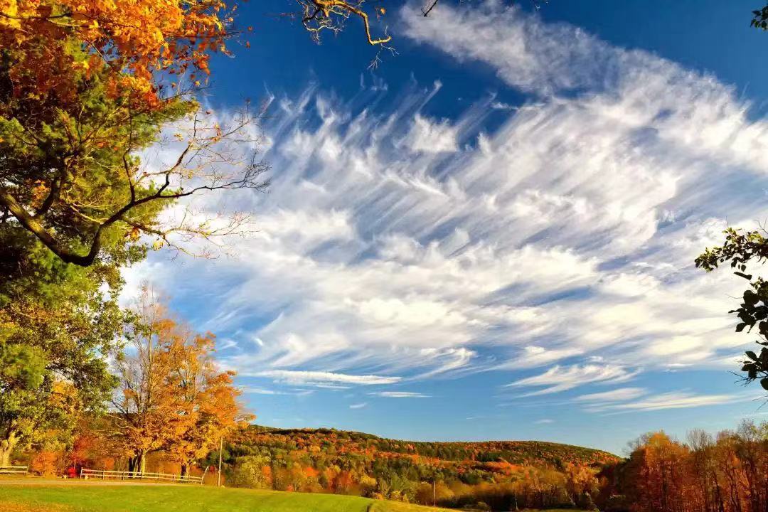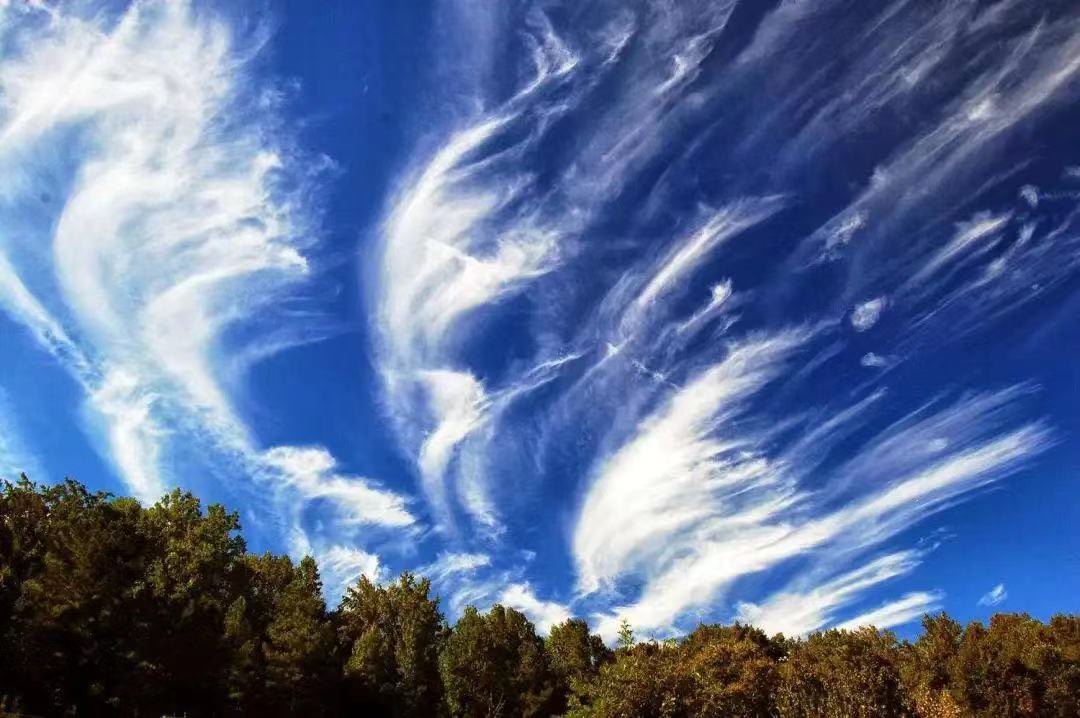 卷云增厚,在蓝天中逐渐铺开,