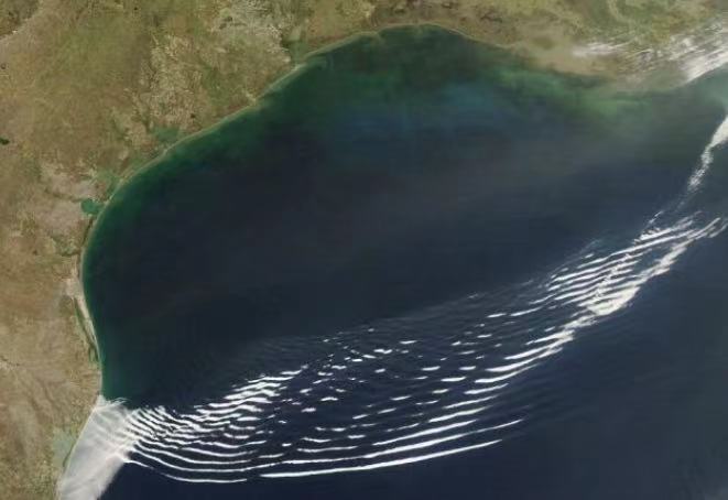 德克萨斯州沿岸,墨西哥湾上空的重力波云:
