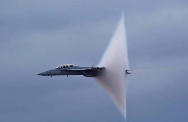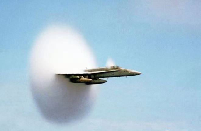 F/A-18战斗机形成的音爆云:
