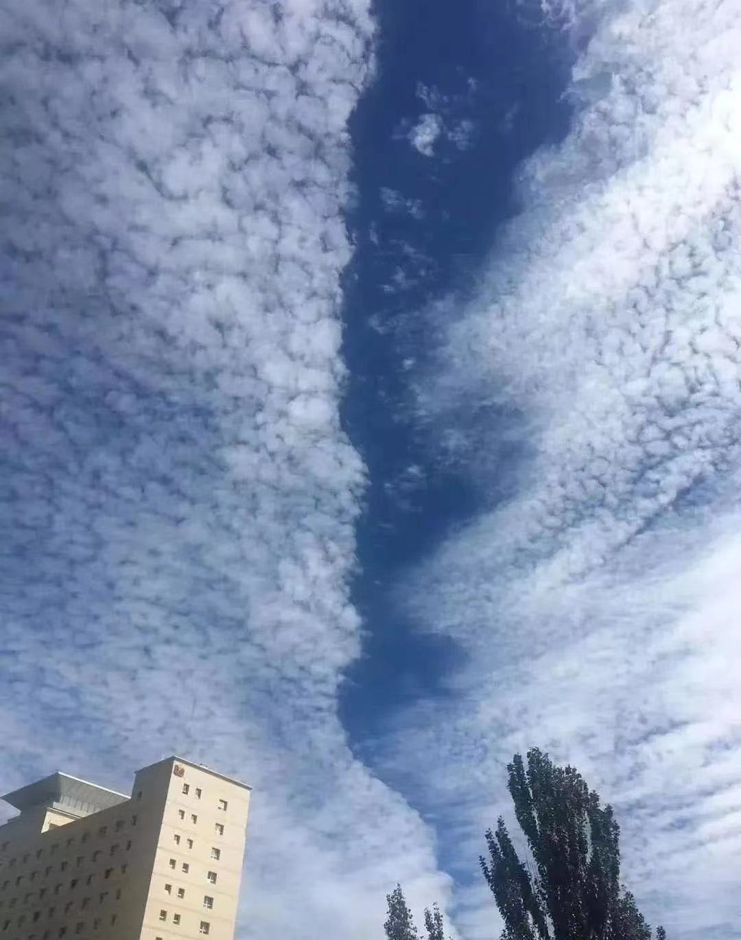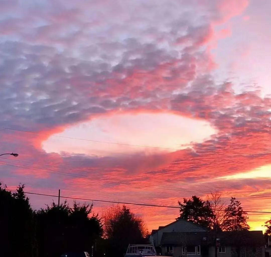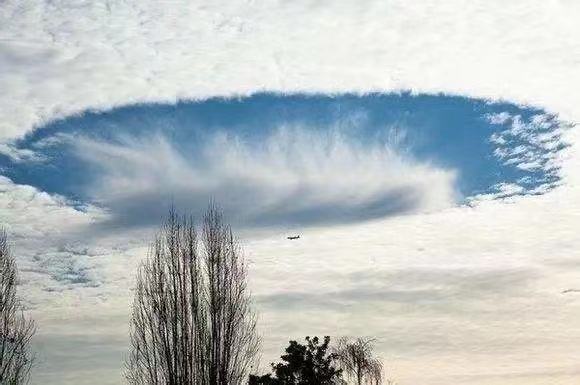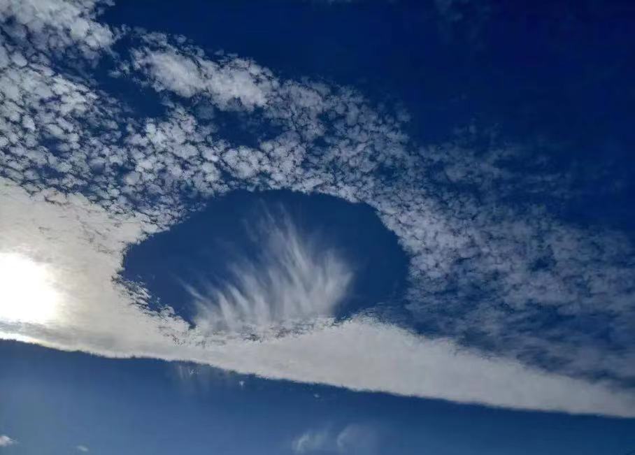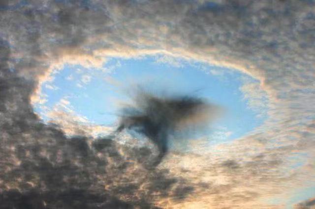 “雨幡洞云”是中高端云层中明亮的洞状缺口,