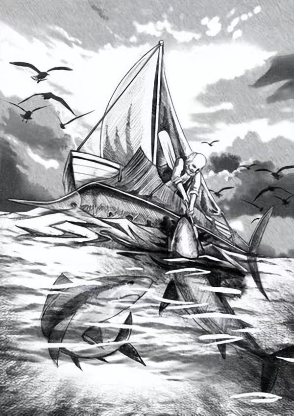 可最终,鲨鱼把大鱼咬得只剩一副骨架,三天三夜的辛苦,就这样付之东流。