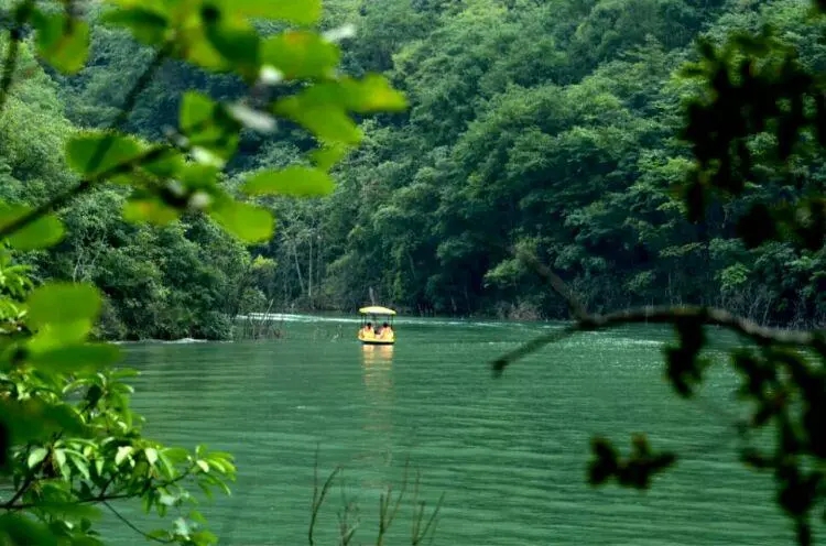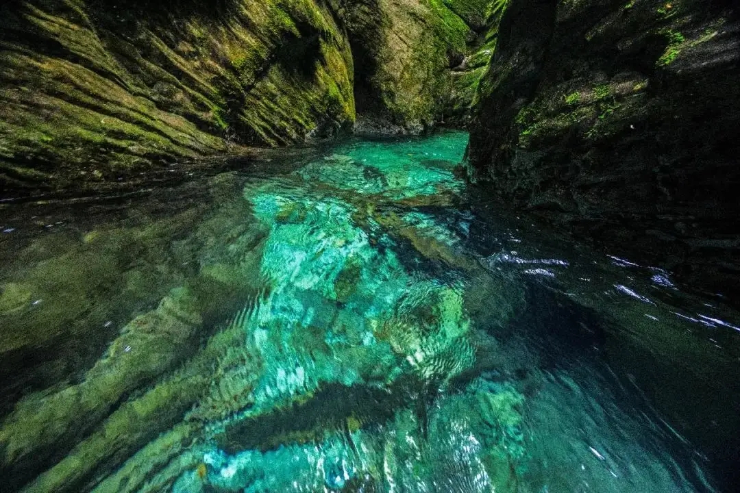 在峡谷中的水面划船,抬眼望去,四周绝壁笔直,水清如镜。船只在纯净的水面前行,如同漂浮在透明的空中,神奇的景象让人如到异域,屏山峡谷也被誉为“中国的仙本那”,这样的小船被称为“太空船”。