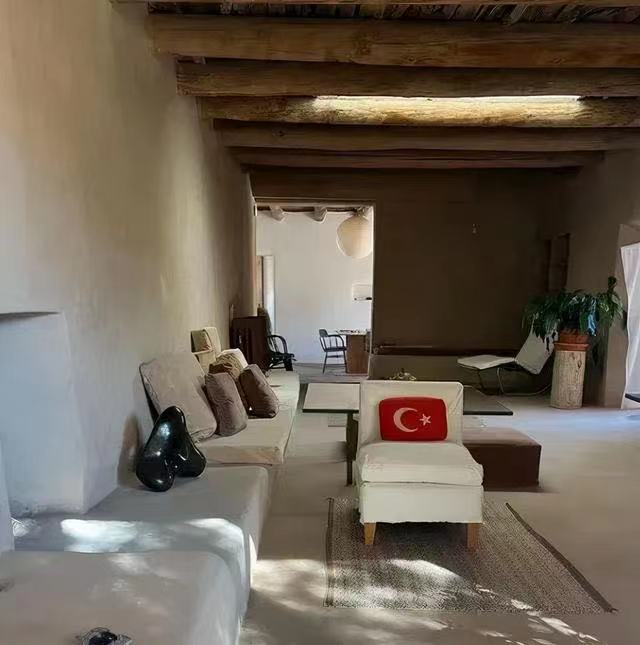 室内的墙面也保持着简朴的风格,要么是土坯模样,要么只是简单的刮大白,很有侘寂风的美感。
