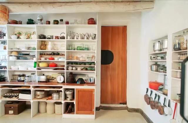 厨房的操作区虽小,但收纳完全没有问题,因为欧姬芙为她的餐厨具们单独准备了一个房间。