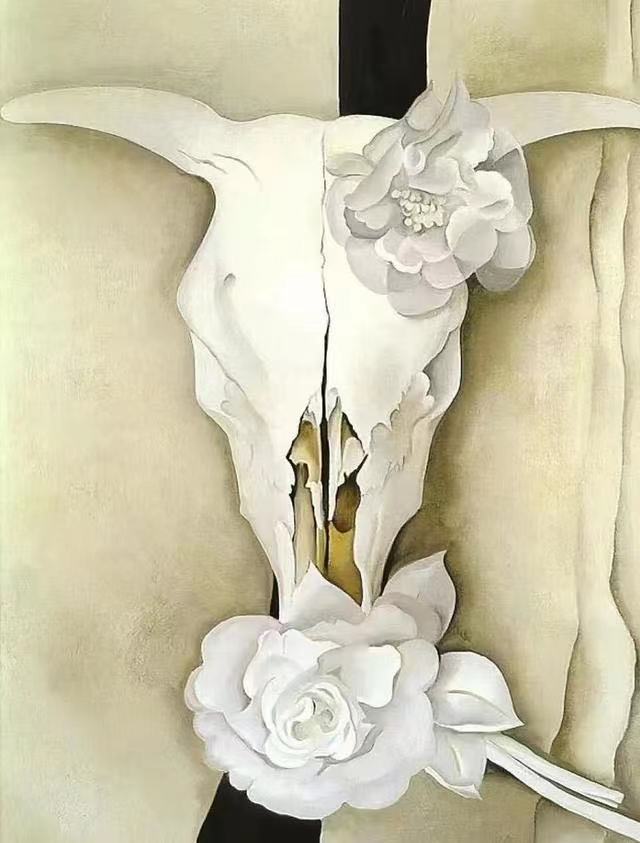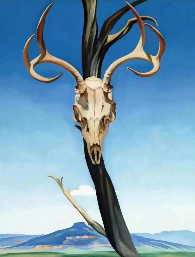 在她后期的画作中,充斥着峡谷、沙漠、荒野、动物骸骨,无论画的是什么,都带给人强烈的震撼与原始的力量。