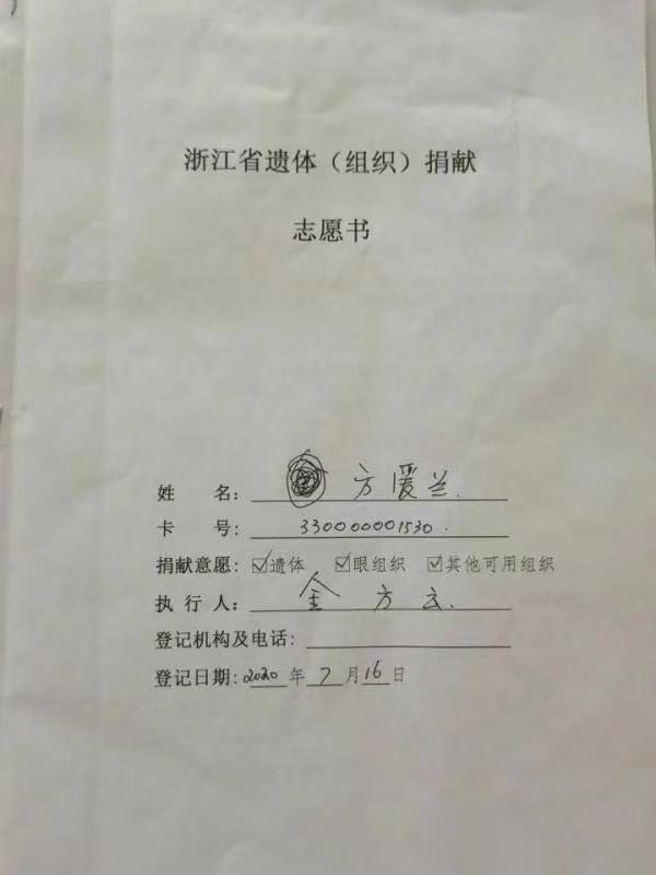 她也成为浙江省年龄最大的遗体捐献者