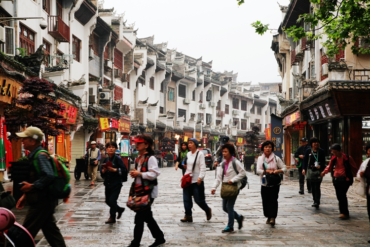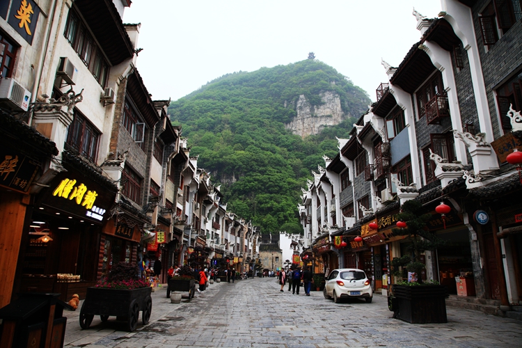 安顿好后,导游宣布,晚七点集体坐车去观景台看苗寨夜景,观光车自理,现在先回房休息。我一看表下午三点,离夜晚还有几个小时,苗寨还没看就休息,这不是白白浪费时间嘛。为此,我跟导游请假,我现在就去逛苗寨,晚间自己去观景台。导游说苗寨白天没什么好看的,只有夜景好看。看我态度坚决,导游又不放心的说,走丢了概不负责。我说你放心,鼻子底下有嘴,走不丢的。我把行李拎到房间,洗了把脸,背起相机,到前台拿了一张酒店名片,就一个人去逛苗寨了。