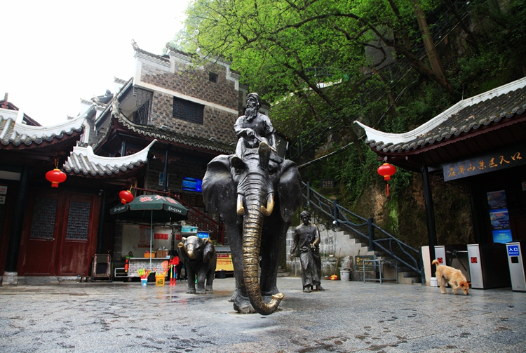 陡坡塘瀑布景区非常大,看完瀑布,沿着山道去天星桥景区。沿途,青山、秀水,还有山崖上巨大的仙人掌。听说这里是西游记取景地,86版西游记结尾,唐僧师徒在瀑布上走过的那个画面,就取景于此。一路绿植装点,翠竹摇曳,恍惚间走进了高老庄。这是猪八戒娶亲的地方,也是天星桥景点的岔路口。这里景色十分清幽,一座大湖簇拥着一排粉墙黛瓦房子,湖中有喷泉,水雾缭绕,恍若仙境。我还见到了一棵美女榕树,形象逼真,让人忍俊不禁。