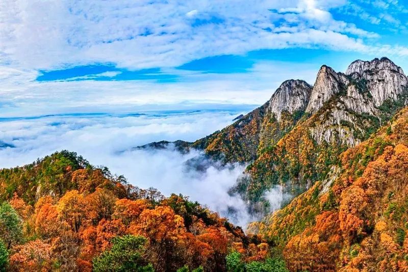 深秋时节,地处大别山主峰的罗田县天堂寨五彩斑斓。