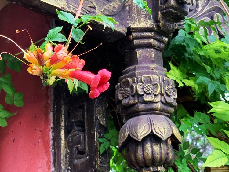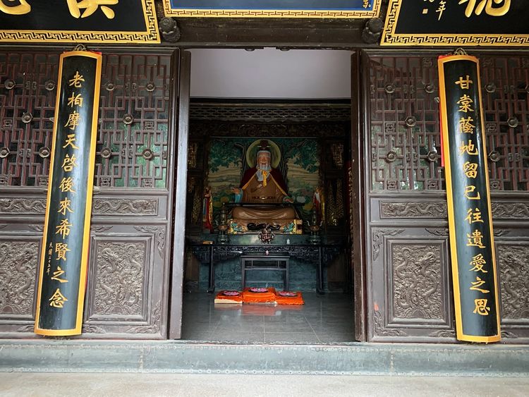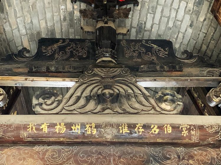 喜欢文天祥的诗句:“我有扬州鹤,谁存召伯棠”,就刻在景区入门后的木雕上,需仰头才能看到.
