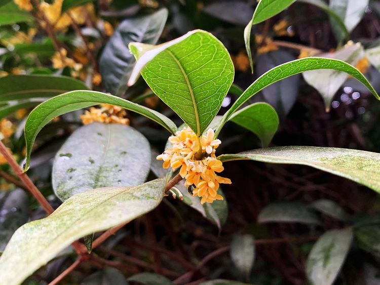 正在为不能去南方闻一闻浓浓的桂花香而遗憾,没想到进宝轮寺大门后,就有两棵桂花树,一簇簇黄色的小花朵正在盛开,一时间浓香了整个寺院,让我想到了“桂子月中落,天香云外飘”的诗句。